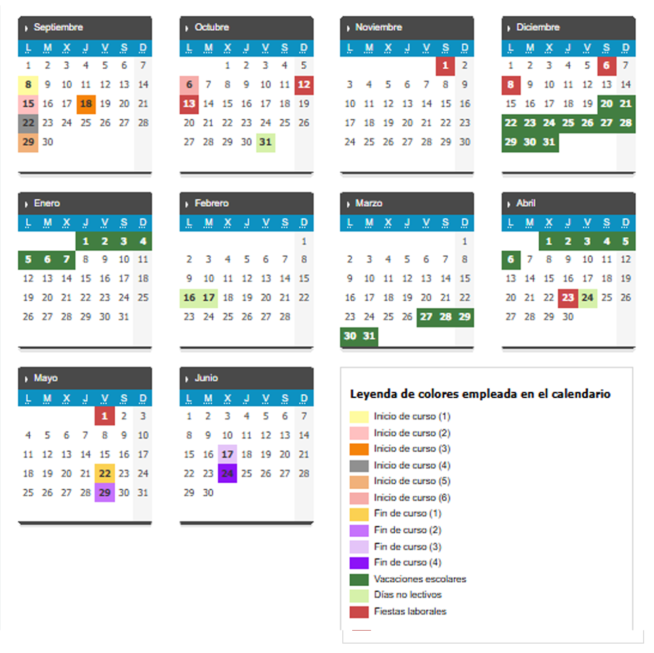 Organización » Calendario escolar